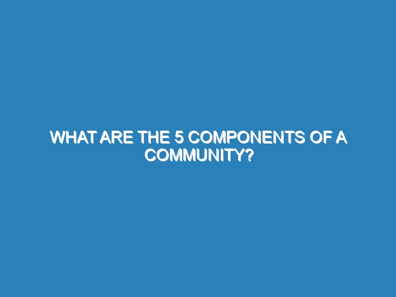 What are the 5 components of a community? A well-functioning community relies on five key components: people, place, shared values,