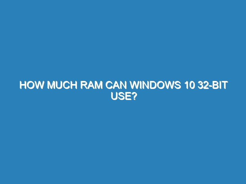 Windows 10 32-bit operating systems can use a maximum of 4GB of RAM. This limitation is due to the architecture