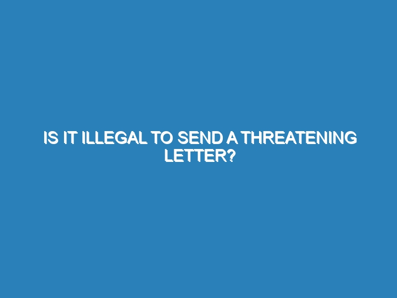 Sending a threatening letter is generally considered illegal as it can be classified as harassment, intimidation, or making threats. The