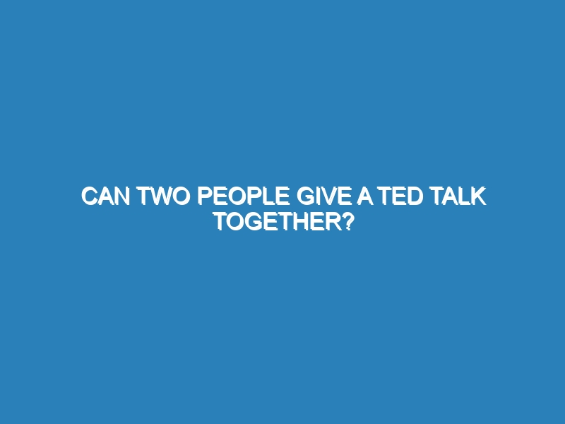 Two people can absolutely give a TED Talk together. Collaborative talks can be particularly engaging, offering diverse perspectives and dynamic