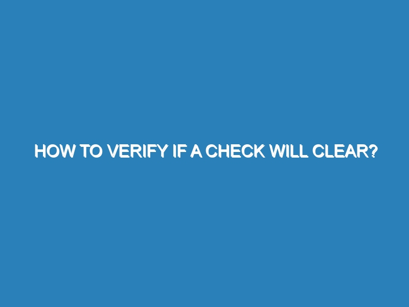To verify if a check will clear, you should contact the bank on which the check is drawn to confirm