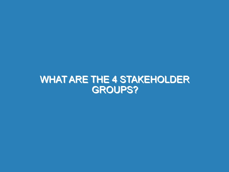 What are the 4 stakeholder groups? Stakeholders are essential to any organization, and understanding the four primary stakeholder groups—employees, customers,