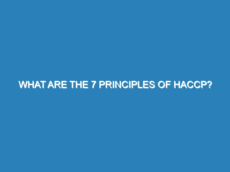 What are the 7 principles of HACCP? The 7 principles of HACCP (Hazard Analysis and Critical Control Points) form a