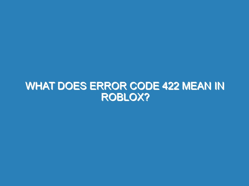 Error Code 422 in Roblox: What It Means and How to Fix It Error code 422 in Roblox indicates a