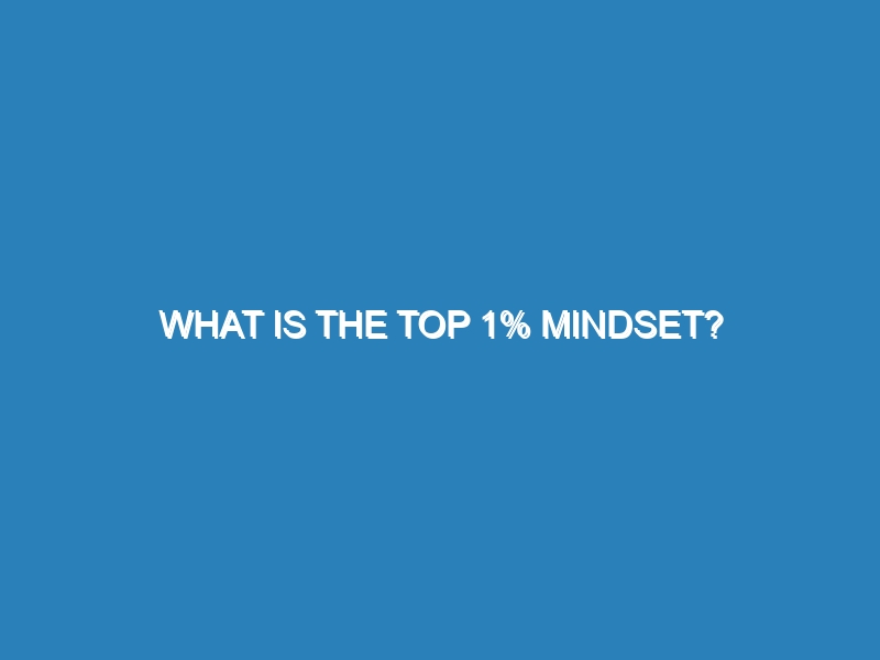 What is the Top 1% Mindset? The top 1% mindset is characterized by a unique set of beliefs and habits