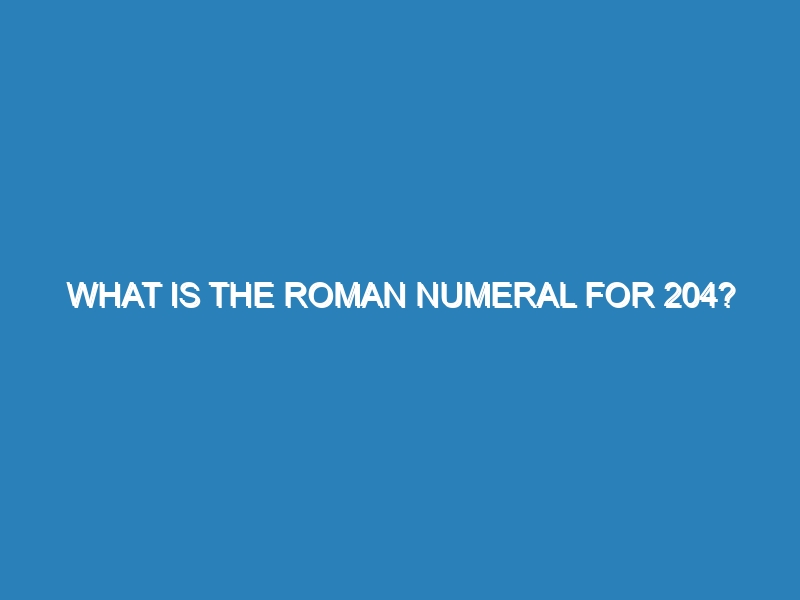 What is the Roman numeral for 204? The Roman numeral for 204 is CCIV. Roman numerals are a numeral system