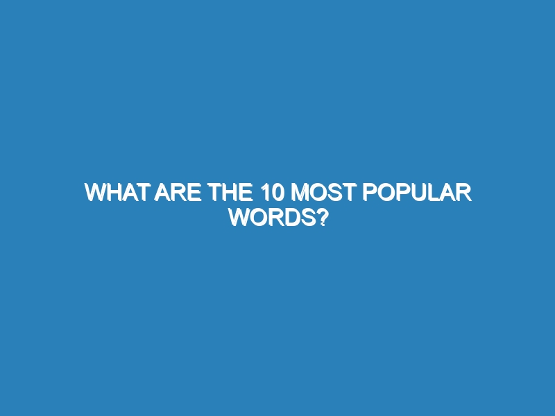 What are the 10 Most Popular Words? The 10 most popular words in the English language often depend on context,