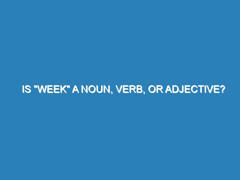 Is "week" a noun, verb, or adjective? The word "week" is primarily a noun. It refers to a period of