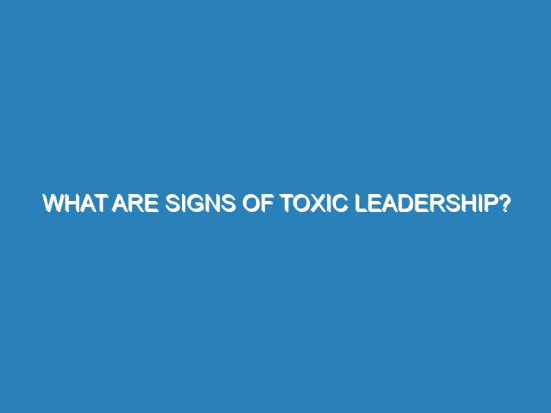 Signs of Toxic Leadership: A Comprehensive Guide Toxic leadership can severely impact an organization’s morale and productivity. Recognizing the signs
