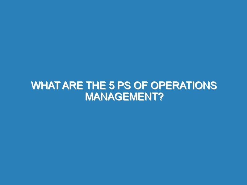 What are the 5 Ps of operations management? The 5 Ps of operations management—People, Processes, Products, Plants, and Planning—are essential