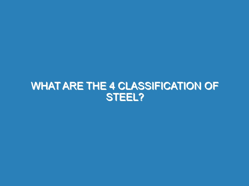 What are the 4 Classifications of Steel? Steel is classified into four main categories: carbon steel, alloy steel, stainless steel,