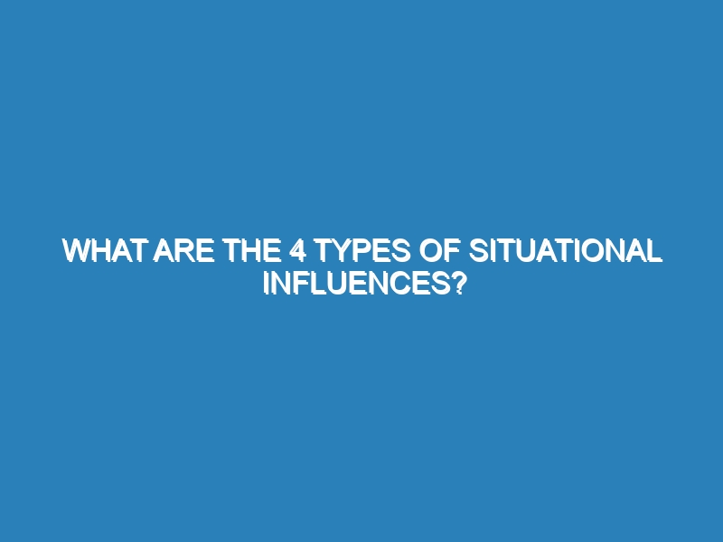 What are the 4 types of situational influences? Situational influences are factors that affect consumer behavior at the time of