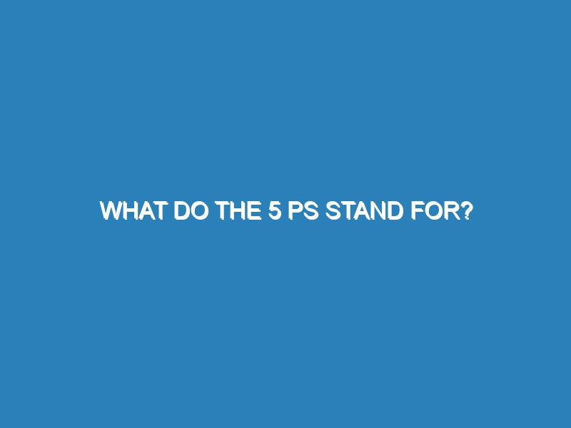 What do the 5 Ps stand for in Marketing? The 5 Ps of marketing are essential components that help businesses