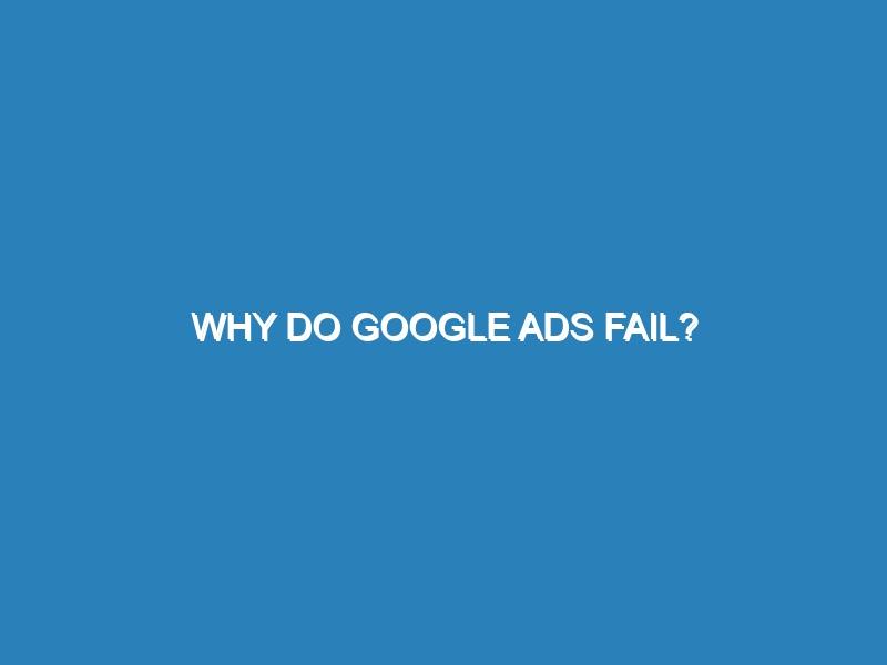 Why Do Google Ads Fail? Google Ads can fail for several reasons, including poor targeting, ineffective ad copy, and inadequate