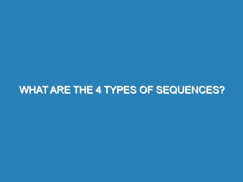 What are the 4 types of sequences? Sequences are fundamental concepts in mathematics and science, representing ordered lists of numbers