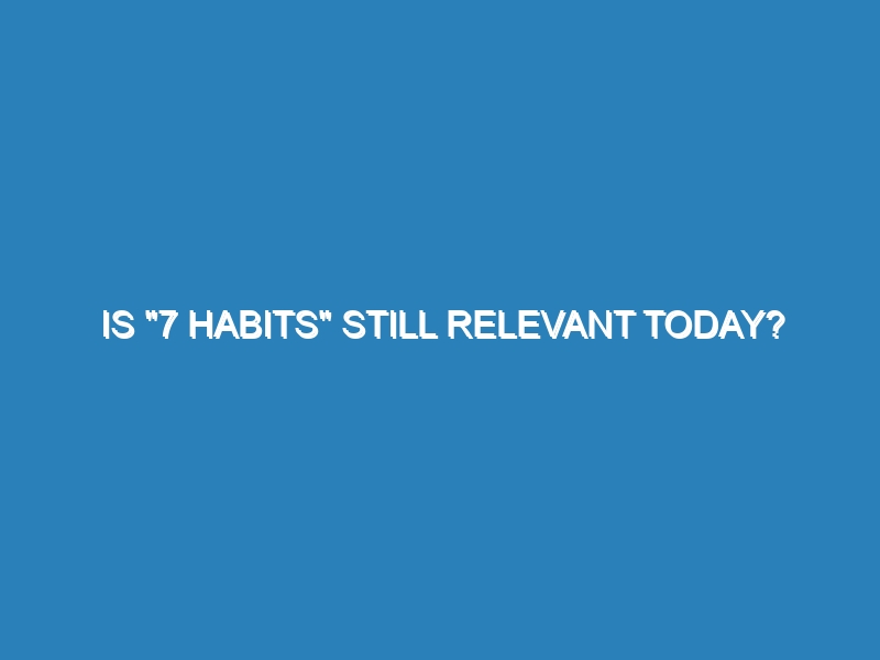 Is "7 Habits" Still Relevant Today? Stephen Covey’s book, "The 7 Habits of Highly Effective People," remains a highly influential