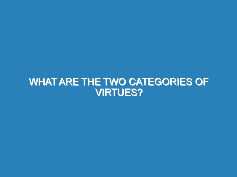 What are the two categories of virtues? Virtues are typically divided into two main categories: moral virtues and intellectual virtues.