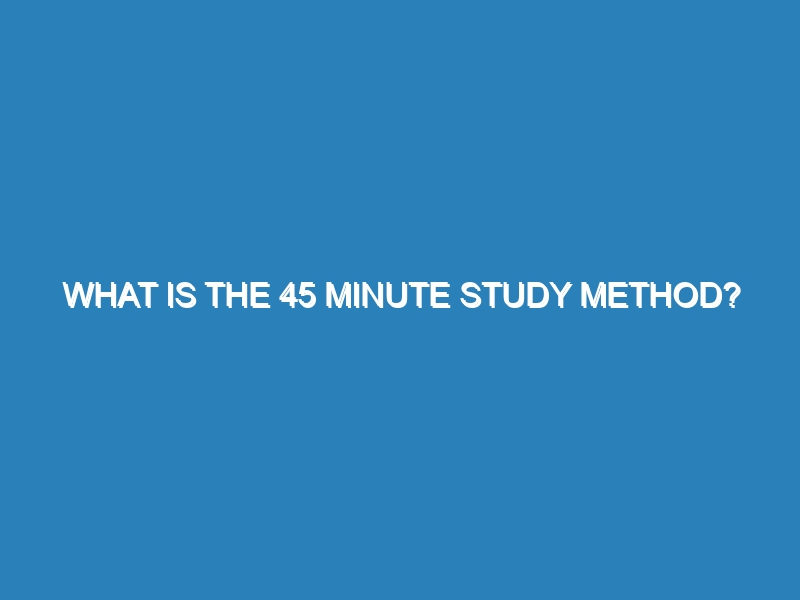 The 45-minute study method is a time management technique designed to enhance productivity and focus during study sessions. By breaking