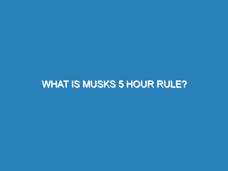 What is Musk’s 5-Hour Rule? The 5-hour rule is a productivity concept that involves dedicating at least one hour a