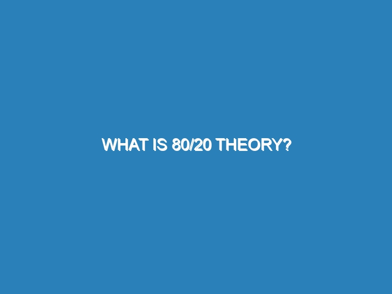 What is the 80/20 Theory? The 80/20 theory, also known as the Pareto Principle, suggests that 80% of outcomes or