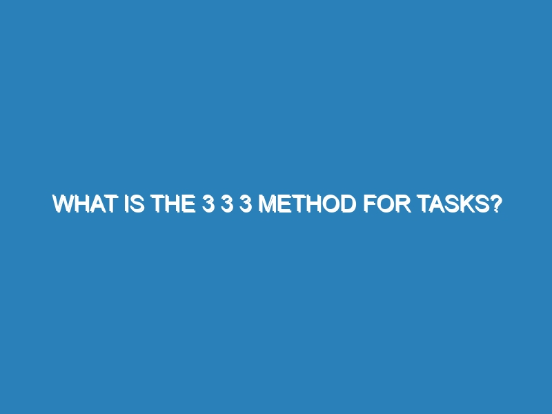 What is the 3 3 3 Method for Tasks? The 3 3 3 method is a productivity strategy designed to