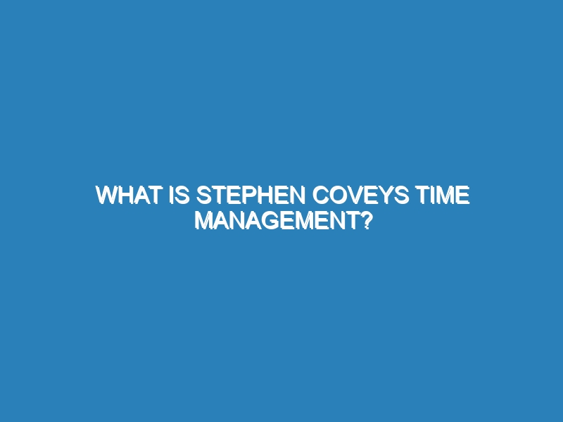 What is the Covey Method? The Covey Method, developed by Stephen R. Covey, is a time management and personal productivity