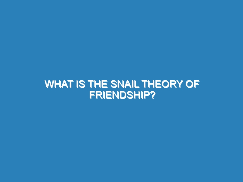 What is the Snail Theory of Friendship? The Snail Theory of Friendship suggests that friendships develop slowly and steadily, much
