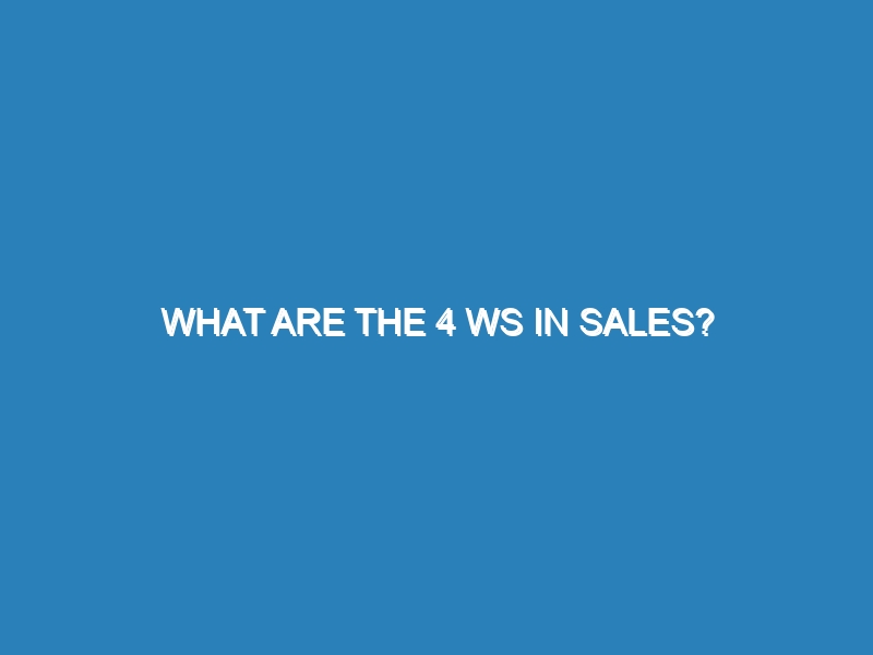 What are the 4 Ws in sales? The 4 Ws in sales—Who, What, When, and Why—are essential questions that help