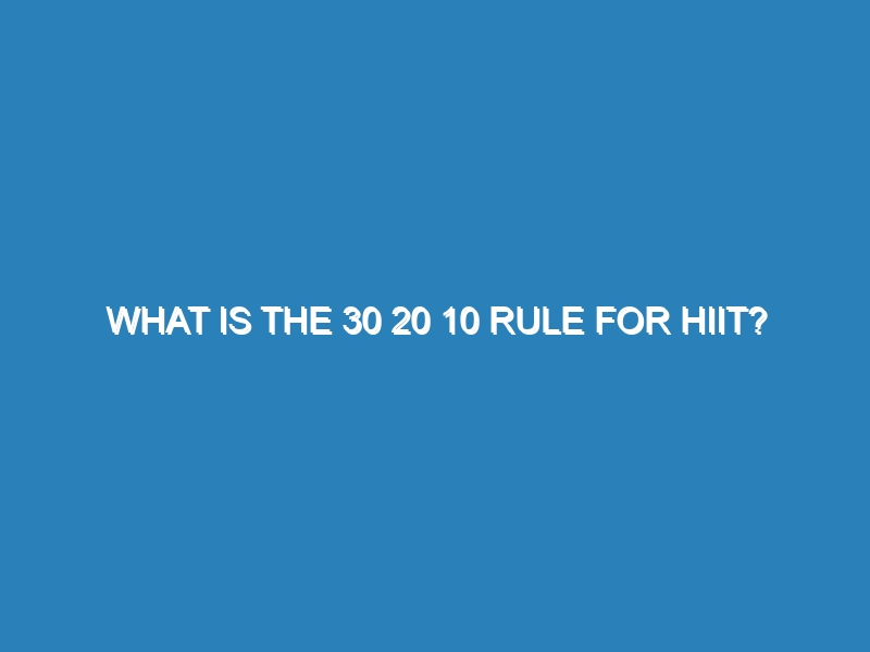 The 30 20 10 rule for HIIT is a structured approach to high-intensity interval training designed to maximize cardiovascular benefits