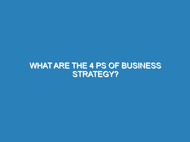 What are the 4 Ps of Business Strategy? The 4 Ps of business strategy—Product, Price, Place, and Promotion—are essential components