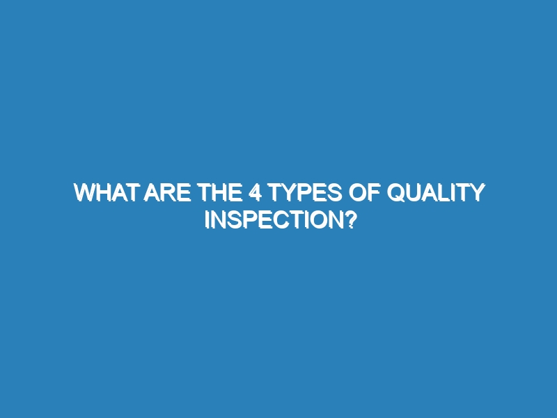 What are the 4 types of quality inspection? Quality inspections are crucial in ensuring that products meet specific standards and