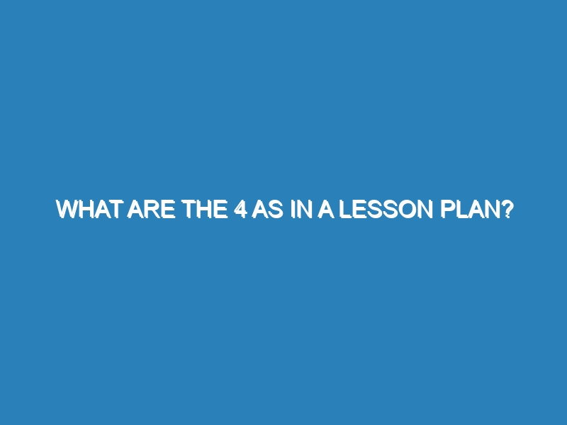 A 4 As lesson plan is an instructional framework designed to enhance classroom teaching by focusing on four key components: