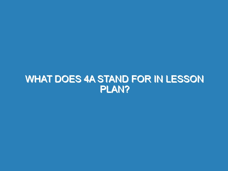 What Does 4A Stand for in a Lesson Plan? The 4A model in lesson planning stands for Activity, Analysis, Abstraction,