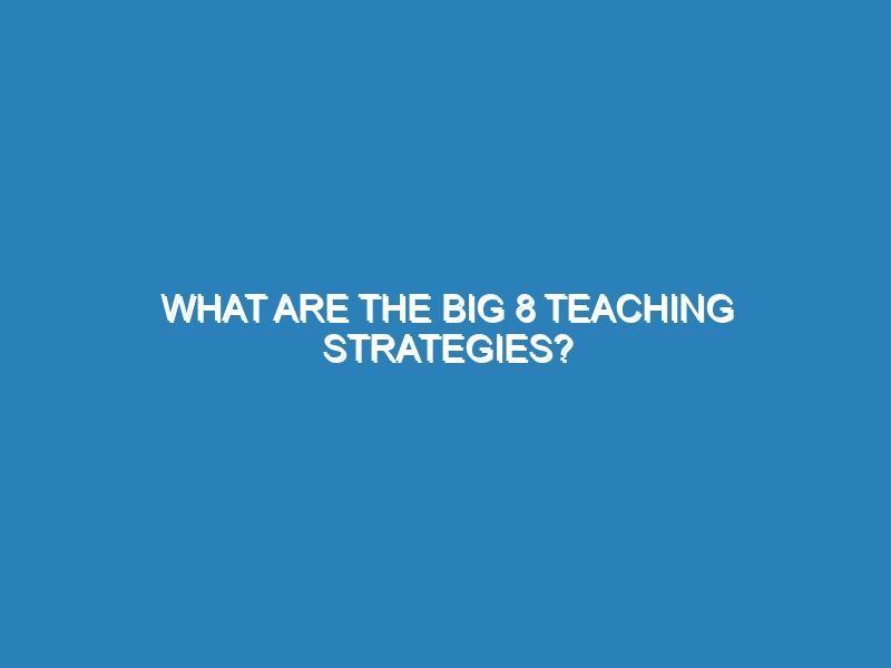 What are the Big 8 teaching strategies? The Big 8 teaching strategies are essential techniques that educators use to enhance