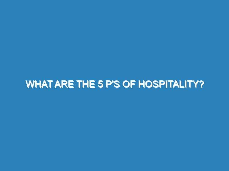 What are the 5 P’s of Hospitality? The 5 P’s of hospitality—Product, Price, Place, Promotion, and People—are essential components that