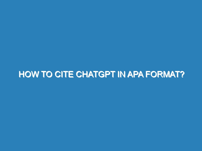 Sure, here is a comprehensive guide on how to cite ChatGPT in APA format: To cite ChatGPT in APA format,