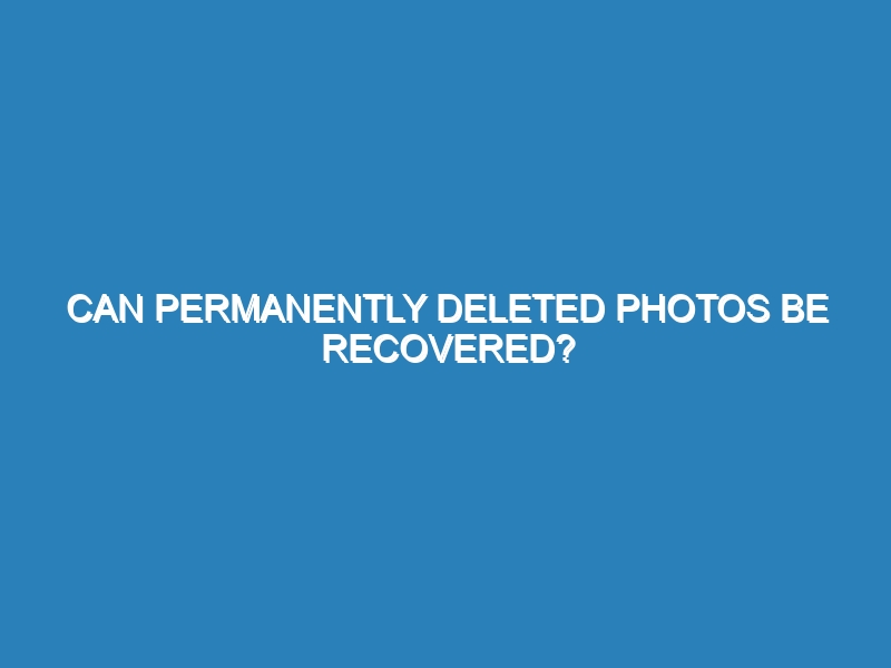 Can permanently deleted photos be recovered? In many cases, permanently deleted photos can be recovered, but success depends on several