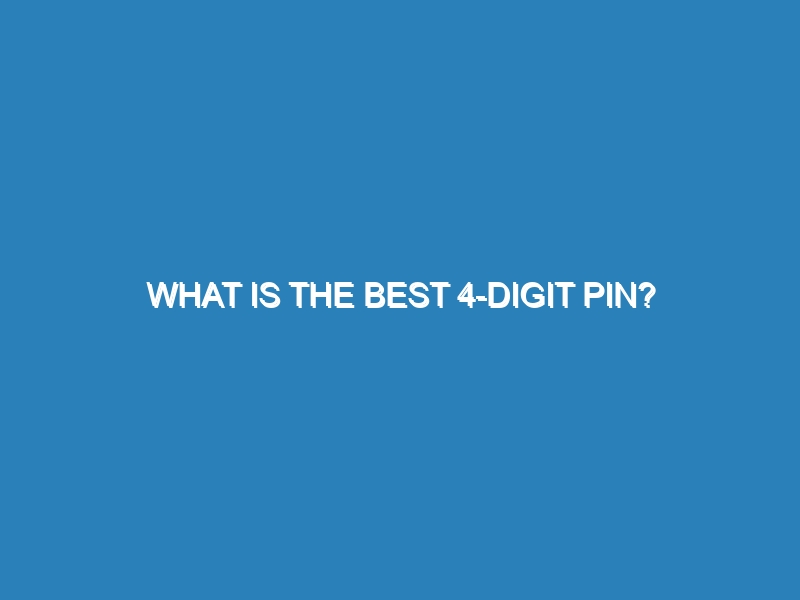 What is the best 4-digit PIN? Choosing the best 4-digit PIN involves balancing security and memorability. Avoid common sequences like