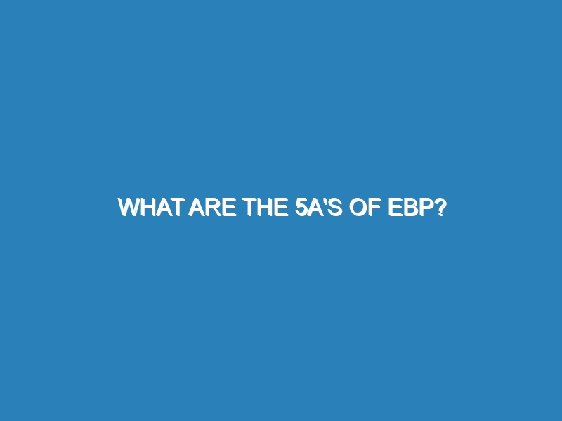 What are the 5 A’s of Evidence-Based Practice (EBP)? The 5 A’s of Evidence-Based Practice (EBP) are a systematic approach