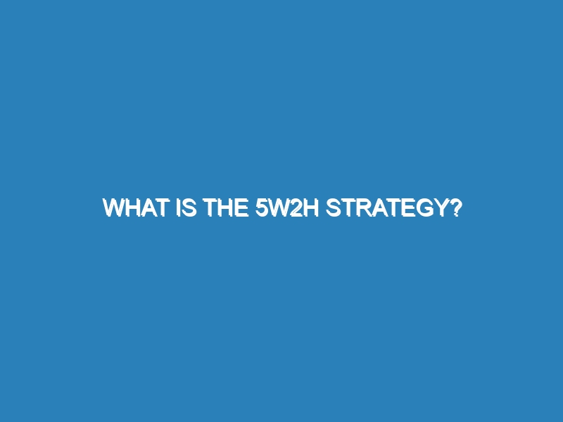 What is the 5W2H Strategy? The 5W2H strategy is a problem-solving and analysis tool used to understand and address issues