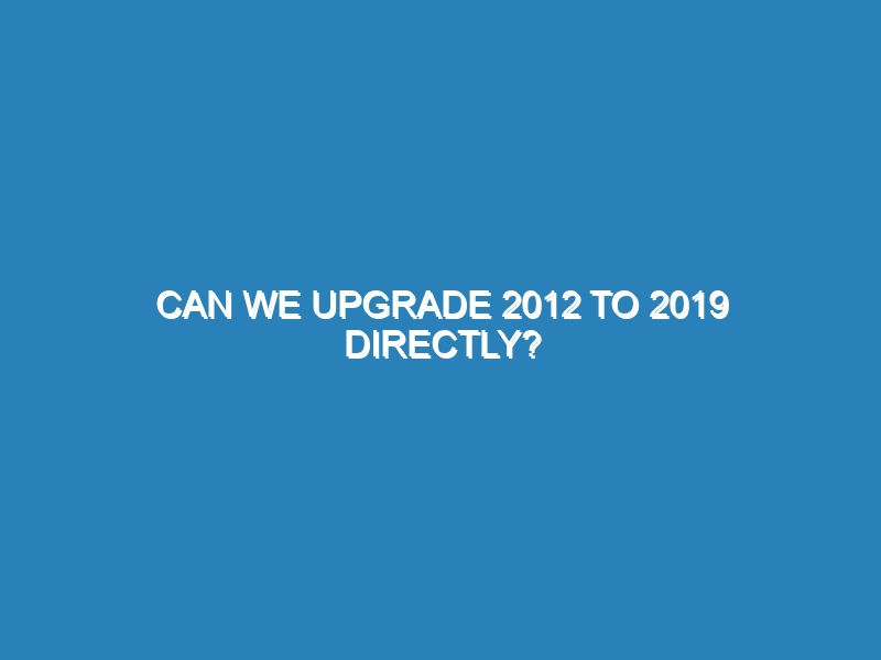Can you upgrade Windows Server 2012 to 2019 directly? Yes, you can upgrade Windows Server 2012 to 2019 directly, but