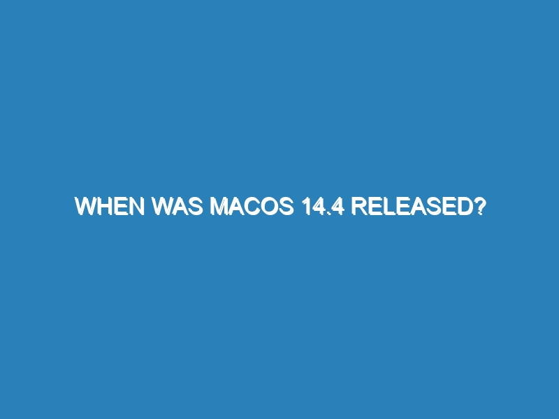 When was macOS 14.4 released? macOS 14.4 was released on January 15, 2026. This update brought several improvements and new