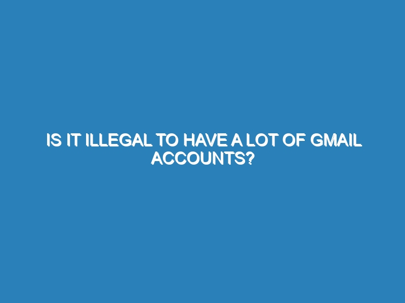 Is it illegal to have a lot of Gmail accounts? No, it is not illegal to have multiple Gmail accounts.