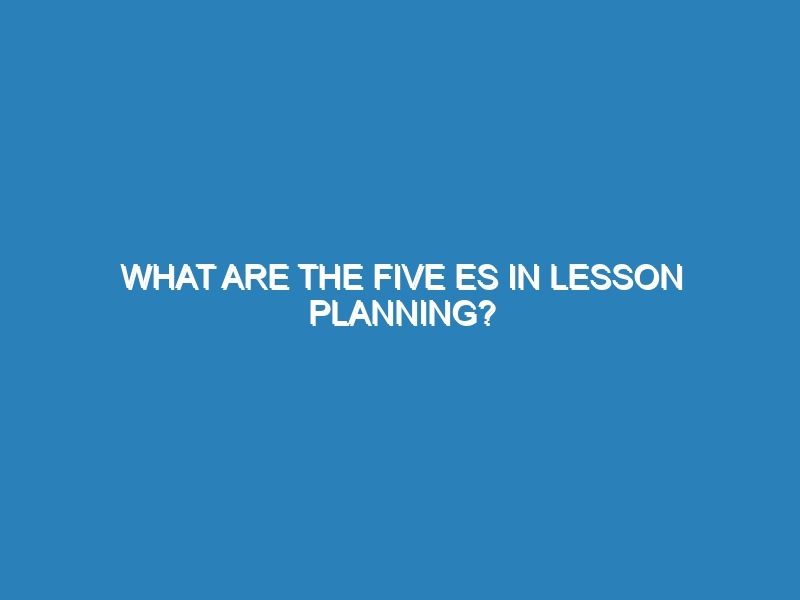 What are the Five Es in Lesson Planning? The Five Es in lesson planning—Engage, Explore, Explain, Elaborate, and Evaluate—are a