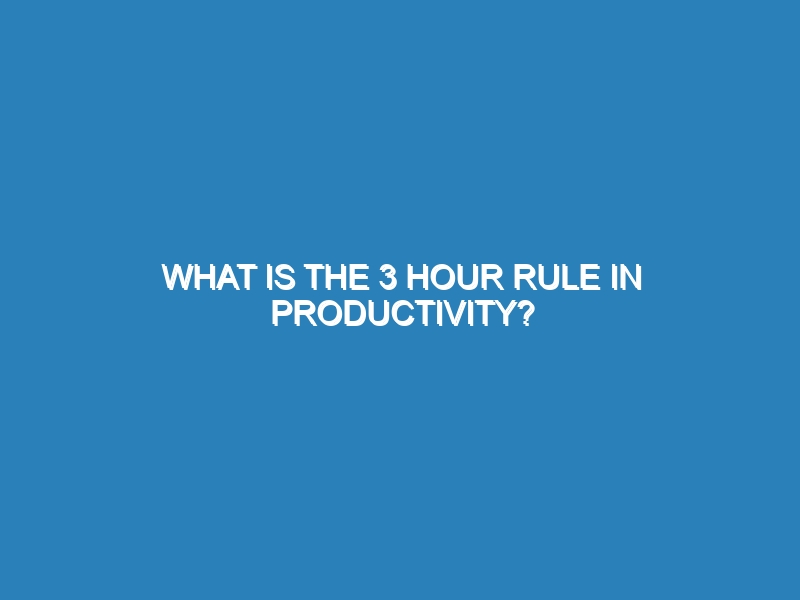 What is the 3 Hour Rule in Productivity? The 3 Hour Rule in productivity suggests dedicating a focused, uninterrupted three-hour