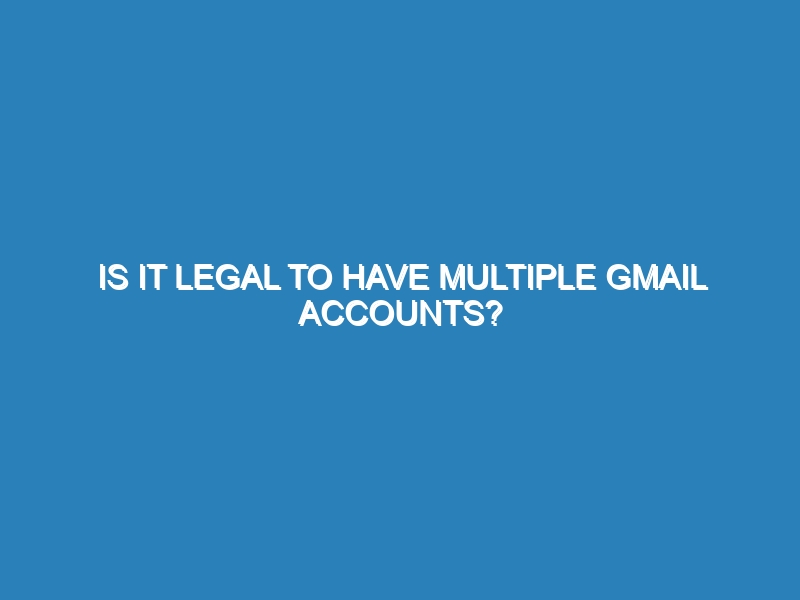 Is it legal to have multiple Gmail accounts? Yes, it is entirely legal to have multiple Gmail accounts. Google allows