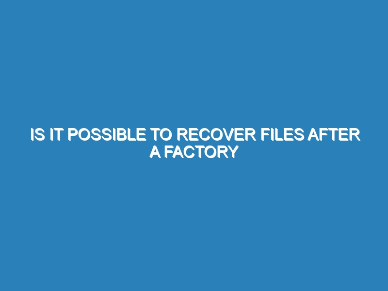 Is it possible to recover files after a factory reset? Yes, recovering files after a factory reset is possible, but